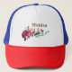 Beautiful trucker hat with watercolor roses and custom name, personalized design.