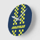 Name Fully Custom Colors Double Checkered Stripes Round Clock