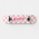 Your daughter will love this girly skateboard by JessicaAmber! Features a pastel pink and white wavy chequerboard pattern. The text in the middle is in a pink retro font with a drop shadow. Edit it to add the recipient's name (short names work best). You can also change the colour of all parts n the Zazzle editor. A great birthday gift for your teen daughter. ⭐ For more Y2K skate gear, visit my store Zazzle.com/The_Pink_Pixie ⭐ For custom orders, message me on Zazzle