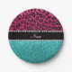 Name hot pink glitter leopard turquoise glitter paper plate