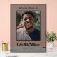 Transparent acrylic funeral sign or memorial sign with your loved one's photo inside a thin black frame, your loved one's name in a bold script and years living in elegant black fonts against a transparent black acrylic background. A simple yet elegant memorial service sign with a large photo. Modern in loving memory sign personalized with your loved one's photo, name, and years living.
