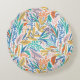 Colorful botanical pattern with double framed name and initial decorate this round pillow. Perfect for back of desk chair, meditation, nursing pillow. Change the name and initial making it yours using the Template provided. Dimensions are 16" diameter when flat and 14" stuffed. 100% brushed polyester is wrinkle free. Machine washable, able to retain color and resist shrinkage. Made in the USA. See "About This Product" at side for more information.