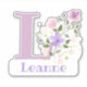Personalise any item with a Name and Initial with Floral Design Cut-Out Sticker. Example name is Leanne.