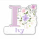 Personalise any item with a Name and Initial with Floral Design Cut-Out Sticker. Example name is Ivy.