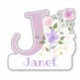 Personalise any item with a Name and Initial with Floral Design Cut-Out Sticker. Example name is Janet.