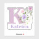 Personalise any item with a Name and Initial with Floral Design Cut-Out Sticker. Example name is Katrina.