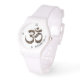 Best price! A sporty white silicon strap and case with a stylish leopard print Om symbol and personalization. Easily personalize using the Template provided. A clear and black strap watch are also available.