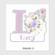 Personalise any item with a Name and Initial with Floral Design Cut-Out Sticker. Example name is Lucy.