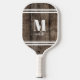 This simple, minimalist pickleball paddle makes the perfect gift for yourself or anyone special. It features a rustic wood background with bold serif initial monogram and a script name elegantly displayed below. White stripes add a sporty touch, giving the paddle a clean, timeless look. The font colours and stripes can be customized to match your style, allowing you to create a unique design that stands out on the court. Ideal for personal use or as a thoughtful gift, this pickleball paddle combines functionality with a rustic charm, making it a standout piece for any player. Elegant Simple Monogram Pickleball Paddle Personalized With Initial And Name Rustic Wood Background
