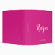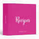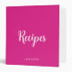 Custom Handwritten Name Text Elegant Template Modern Pink And White Recipes 3 Ring Binder.