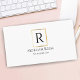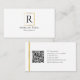 A simple gold design to personalize with your name, monogram, info and QR code in black on white background.