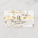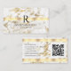 Name & Monogram, QR code, White & Gold Marble Business Card