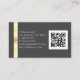 An elegant design of white and gold marble with brushed gold band. Personalize your name, monogram, occupation, QR code and contact info on back. Back is dark grey with white text and brushed gold band.