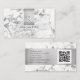 Name & Monogram, QR code, White & Grey Marble Business Card