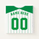 This design is a baseball / softball style jersey with green pinstripe and green shoulders and neckline, the background colour can be changed, just click on CUSTOMIZE.