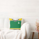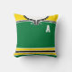 Easy to edit ice hockey or lacrosse custom jersey design throw pillow. The colours of this design are green, gold and black, the white parts can be changed, just click 'CUSTOMIZE' to choose a different colour. Just use the boxes to the right of the image to insert your own choice of name and number. You can also add either a captains 'C' or alternate 'A' or the sweater number on the front too.