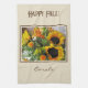 Colourful autumn sunflower print, with a blooming lily and orange safflowers, on this big kitchen towel with Happy Fall and personalized name. Easily change, add to or remove dark brown text and name using the Template provided. Awesome gift for teacher, family and friends during the Fall Season. This large 16"x24" textured towel is 80% durable woven polyester/ 20% polyamide blend microfiber. Great for drying and machine washable. Made to last a lifetime. See "About This Product" at side for more information.