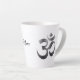 Personalize this 12oz. Latte Cup for yourself--- or as a gift for family or friends. The Om symbol, printed on both sides, is a black textured metal design. Easily personalize and change name using the Template provided. A large 17oz. Latte Mug is also available. Perfect for any beverage, hot or cold and makes a lasting, unique gift. Microwave and dishwasher safe. See "About This Product" at side for more information.