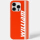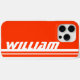 Orange and white sports style iphone case cover. Case reads: William or personalize this case with the name of your choice up to 7 letters. *Please note some names will not always fit due to the nature of the font. A perfect gift for someone who is vibrant and sporting. Uniquely designed by Sarah Trett for www.mylittleeden.com