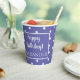 Personalized modern birthday paper cups in periwinkle and white. It has the message, “Happy Birthday! Alexander” in stylish typography and.a periwinkle blue / purple and white polka dots pattern. To personalize, simply type your initial into the personalize this text box. To change the colour, font or pattern, check out the design editing tool. Perfect for personalized birthday celebration tableware and party supplies. For help with personalization, matching products, or for a custom design email: ursuladawnmoon@gmail.com