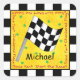 Name Personalized Black White Chequered Flag Wavin Square Sticker