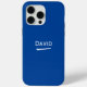 The design features a chic design including customizable name typography on a deep blue background. Personalize this phone case by adding the user's name. It makes a great birthday or holiday gift!