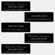 Personalize and add your name, phone and email address. Black background, white text. You can change the background colour and the text colour to match your brand. You can choose one colour per row, 5 rows.