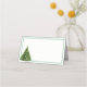 This folded name place card is shown in basic white with a festive holiday Christmas tree print.