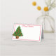 This folded name place card is shown in basic white with a festive holiday Christmas tree print.