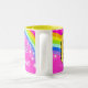 Bright and colourful rainbow add your name kids mug. Perfect gift for a vibrant child. Mug reads: Our daughter Princess Jasmine or personalise this mug with the words of your choice. Mug designed exclusively by Sarah Trett. www.sarahtrett.com for www.mylittleeden.com on zazzle