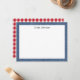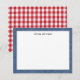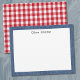 A set of these note cards, tied with a pretty bow or twine for a guy, is an ideal personalized him or her gift for family and friends. A blue denim print simple frame on front with a classic red and white gingham pattern on the back are featured on this trendy 4.25"x5.5" note card. Easily change or remove the modern name using the Template provided. More styles, sizes and paper types are available. Made and Printed in the USA.