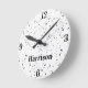 Personalize this masculine grey and black micro marble chips 8" diameter acrylic wall clock using the Template provided. Black typography name and bold numbers are featured on this classic Terrazzo pattern clock. Also available in 11.75" round and square shape. Printed with AcryliPrint®HD process to ensure the highest quality display of any content. Clock is a non-ticking design and requires one AA battery (not included). See "About This Product" for more information.