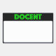 Make your Docents stand out from the crowd with this Black and Green Button! Goes with any outfit. Museum docent is a title used for educators trained to further the public's understanding of the cultural and historical collections of the institution, including local and national museums, planetariums, zoos, historical landmarks, galleries, libraries and parks. Prospective docents generally undergo an intensive training process at the expense of the educational institution, which teaches them good communicative and interpretive skills, as well as introducing them to the institution's collection and its historical significance. They are also provided with reading lists to add to the basic information provided during training, and must then "shadow" experienced docents as they give their tours before ultimately conducting tours on their own.