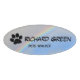 Paw print on left of badge with rainbow to lower right. Rainbow cuts diagonally across centre. Name and Title may be personalized.
