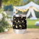 Festive stainless-steel thermal tumbler features gold bright glittery stars pattern with ample room on back for personalization. Easily change or remove text to make it yours using the Template provided. It has double walled insulation for temperature retention. Stainless Steel construction for durability. The clear lid is leak-proof. Great for transporting hot or cold drinks! Excellent printing and high reviews. See "About This Product" at side for more information.