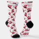 Fun socks for the 4th of July celebration. Patriotic red, white and blue Uncle Sam top hats and tiny stars on a white background. Navy blue name is on the top on a white band. True One Size Fits All (Size 5 Female to Size 11 Male). See 'About' for more information and care.