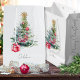 Celebrate the season with this elegant watercolor Christmas gift bag, featuring a hand-painted Christmas tree adorned with red ornaments, beaded garlands, and a shimmering gold snowflake topper. At the base, a cluster of red and pink wrapped presents adds warmth and storytelling charm. The soft white background and personalized name in script make this bag perfect for heartfelt gifting — whether under the tree or at a holiday gathering.