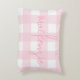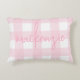 Personalize this pink and white, buffalo check pattern, farmhouse style pillow by adding a name. The design is the same on the front and back of the pillow. This design fits with a living room, dorm, or nursery with a farmhouse, spring, or chic theme.