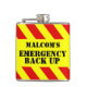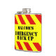 Fun hazard help emergency courage flash, ideal gift for a best man, groom or men in situations that may require a little back up or Dutch courage. personalize with the name and cautionary words of your choice. Currently reads Malcom's Emergency Back Up. Designed by Sarah Trett.