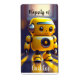 an image of a robot - stickers can be used as nameplates /bookplate or can be attached to card stock to be used as bookmarks, 'thank you' cards, save-the-date, playing date among other things - change text as required.