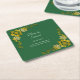 Names Date Message Emerald Green & Gold Square Paper Coaster