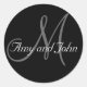 By Elke Clarke©2009. More designs at WhiteWhimsicalWeddings.com and WhiteWhimsicalWeddngs.blogspot.com. The design is simple yet classic and fits with any invitation and wedding theme. THE MONOGRAM GALLERY allows you to customize the names, monogram and colours of this sticker. Just click on the "CUSTOMIZE" button and follow the prompts.