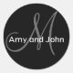 By Elke Clarke©2009. More designs at WhiteWhimsicalWeddings.com and WhiteWhimsicalWeddngs.blogspot.com. The design is simple yet classic and fits with any invitation and wedding theme. THE MONOGRAM GALLERY allows you to customize the names, monogram and colours of this sticker. Just click on the "CUSTOMIZE" button and follow the prompts.
