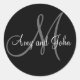Names & Initial Monogram Wedding Sticker Black