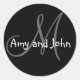 By Elke Clarke©2009. More designs at WhiteWhimsicalWeddings.com and WhiteWhimsicalWeddngs.blogspot.com. The design is simple yet classic and fits with any invitation and wedding theme. THE MONOGRAM GALLERY allows you to customize the names, monogram and colours of this sticker. Just click on the "CUSTOMIZE" button and follow the prompts.