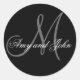 By Elke Clarke©2009. More designs at WhiteWhimsicalWeddings.com and WhiteWhimsicalWeddngs.blogspot.com. The design is simple yet classic and fits with any invitation and wedding theme. THE MONOGRAM GALLERY allows you to customize the names, monogram and colours of this sticker. Just click on the "CUSTOMIZE" button and follow the prompts.