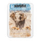 Stylish watercolor Photo Magnet featuring the unique scenery and wildlife of the african country with an elephant. Buy now as a travel souvenir and safari gift idea