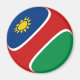 The flag of Namibia has been carefully fitted to the circular form of this magnet. A decorative way to promote Namibian culture.