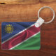 Keychain with the flag of Namibia in wavy fabric style design. This design features the Namibian flag colours and design with a beautiful waving material textured effect. This flag design is a great way to show you are proud to be from Namibia.