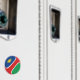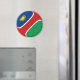 Le drapeau de la Namibie a été soigneusement ajusté à la forme circulaire de cet aimant. Une façon décorative de promouvoir la culture namibienne.